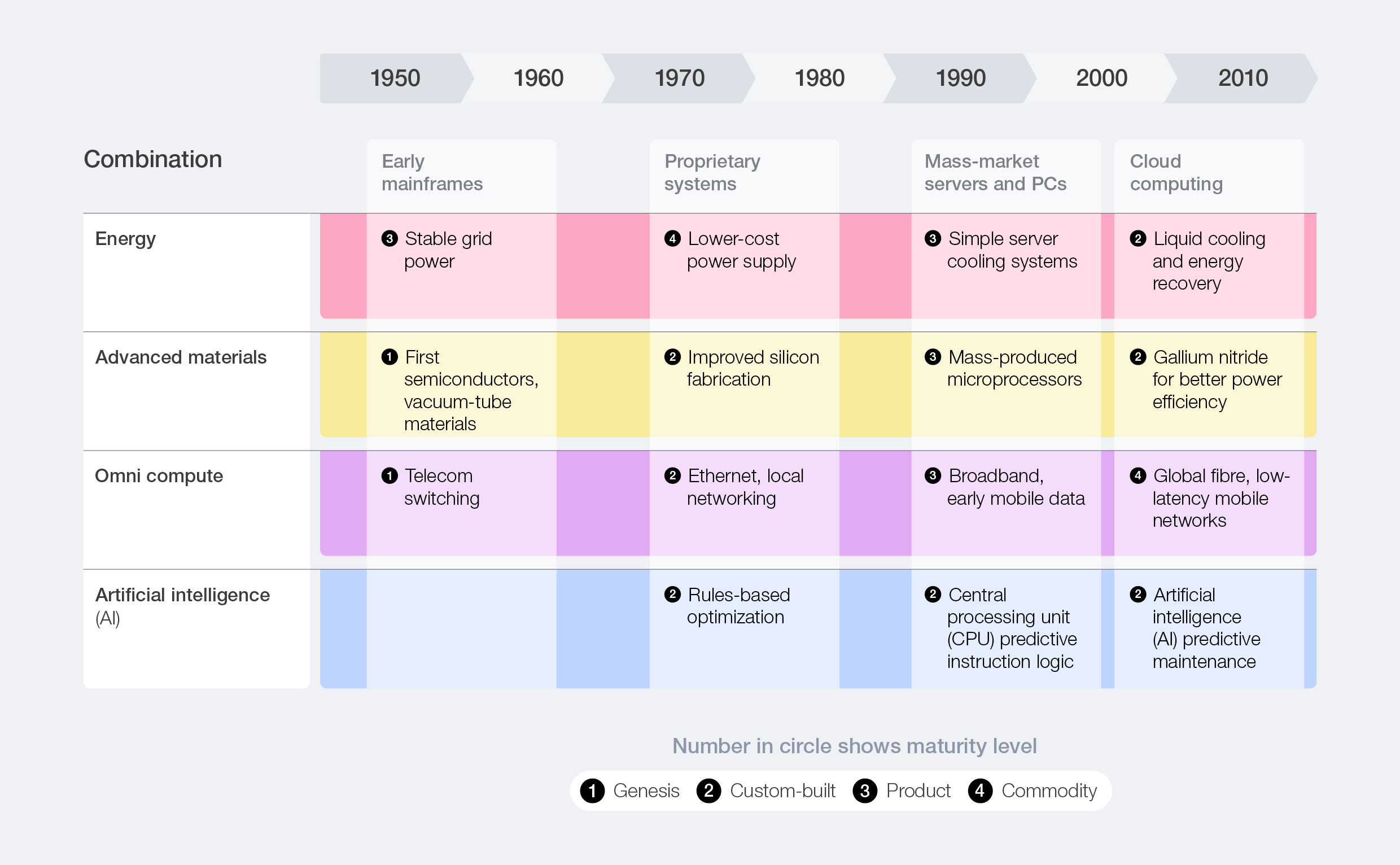 Figure 3: Technology combination over different compute generations