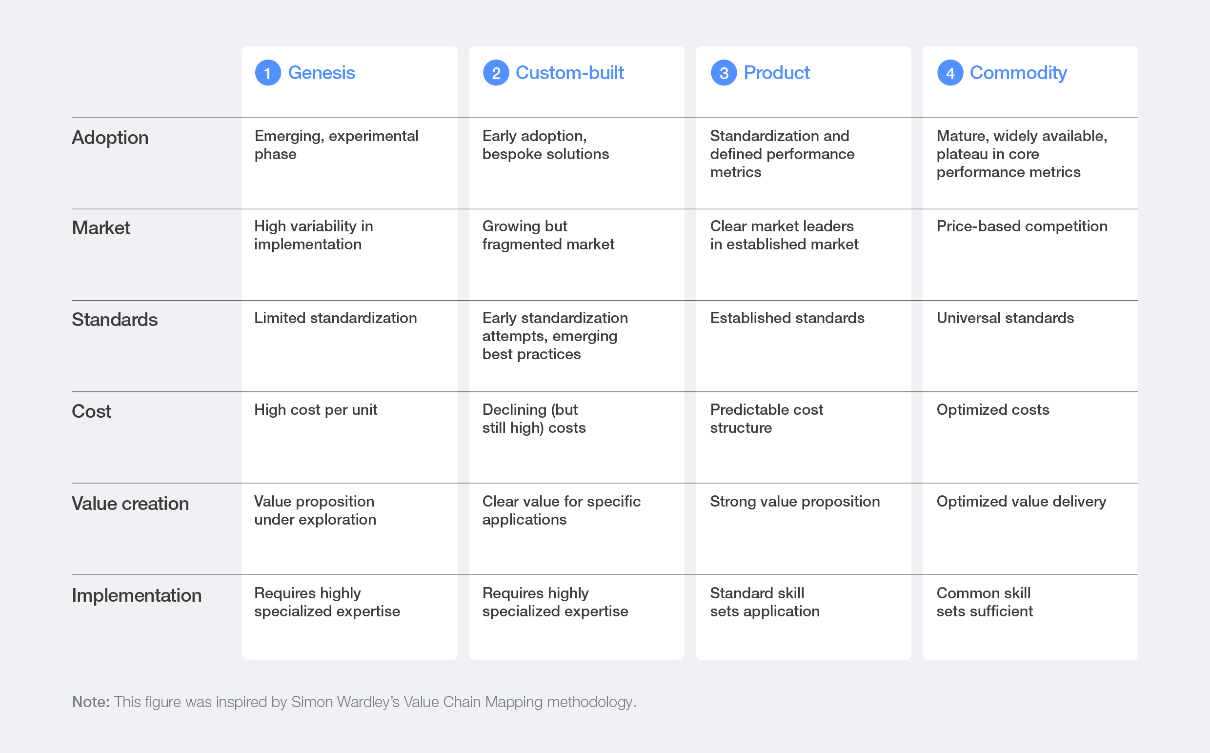Figure 2: Simon Wardley's four-stage classification framework